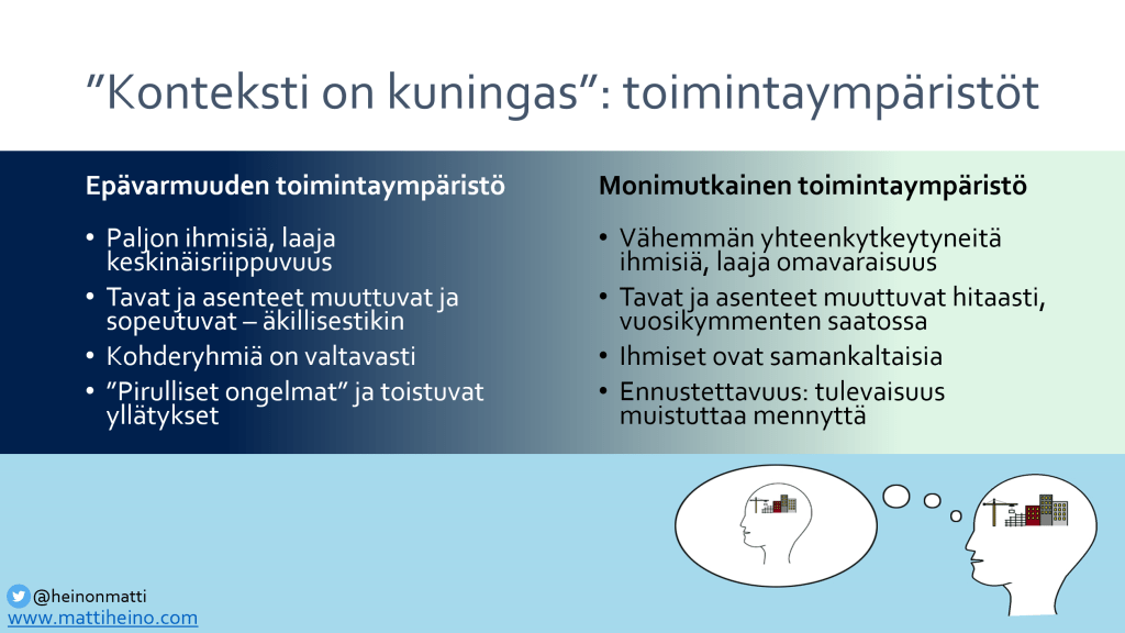 Toimintaympäristöjä koskeva dia esityksestäni. Ks. myös aihetta koskeva kurssi.